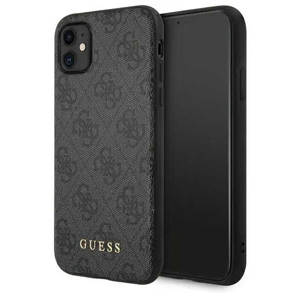 GUESS TRDI OVITEK ZA IPHONE 11 6.1 XR 4G KOVINSKO ZLAT LOGO Z LOGO GREY