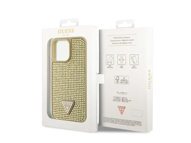 Guess, Trdo ohišje za Apple iPhone 15 Pro Max Triangle Diamond, Zlata