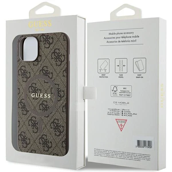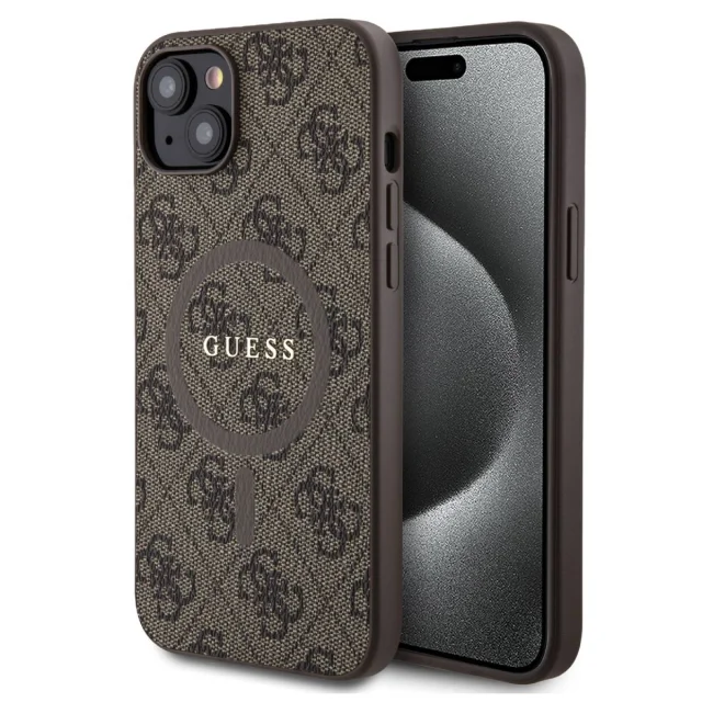 Guess, Zaš?itni ovitek za iPhone 15 Plus MagSafe Printed 4G, Rjava