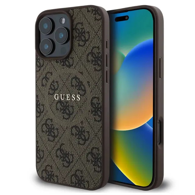 Guess, Zaščitni ovitek za iPhone 16 Pro Max MagSafe Printed 4G, Rjava