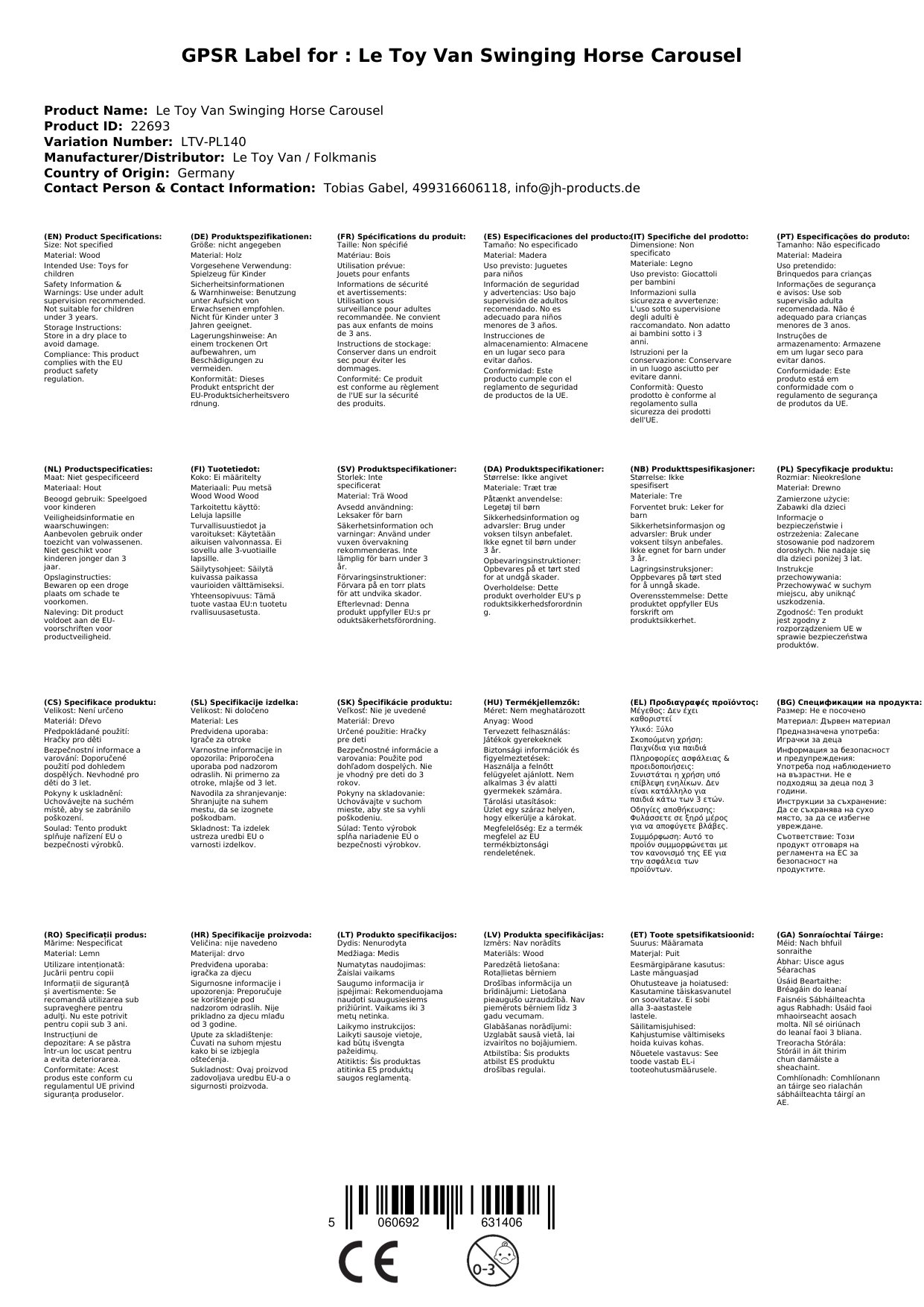 Z zlatimi poudarki na elegantni karuselski palici in telesu je to luksuzna igrača, ki navduši vsakega otroka. Izdelana je iz recikliranega lesa iz trajnostno upravljanih gozdov, kar zagotavlja okolju prijazno in trajnostno igro.