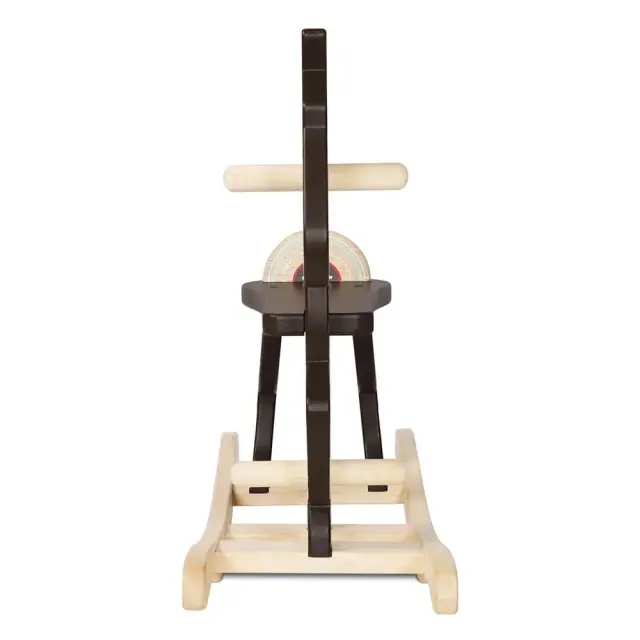 Stabilni leseni ročaji omogočajo varen oprijem malčkom, majhna opora na hrbtu pa preprečuje zdrs nazaj. Uporabljeni so netoksične, otrokom prijazne barve in materiali, ki so preverjeni za varnost in primerni za najmlajše.