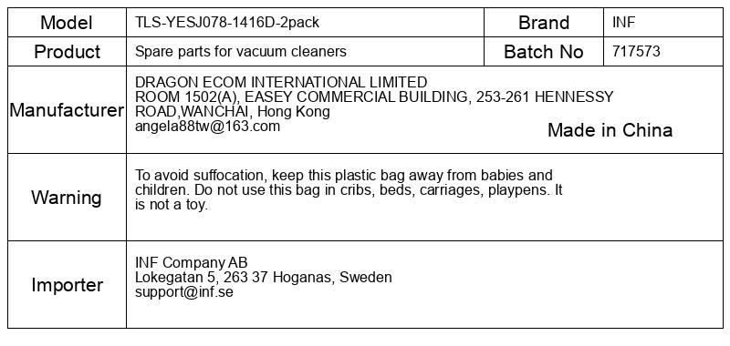 Da se izognete zadušitvi, hranite to plastično vrečko stran od dojenčkov in otrok. Te vrečke ne uporabljajte v zibelkah, posteljah, vozičkih, stajicah. To ni igrača.