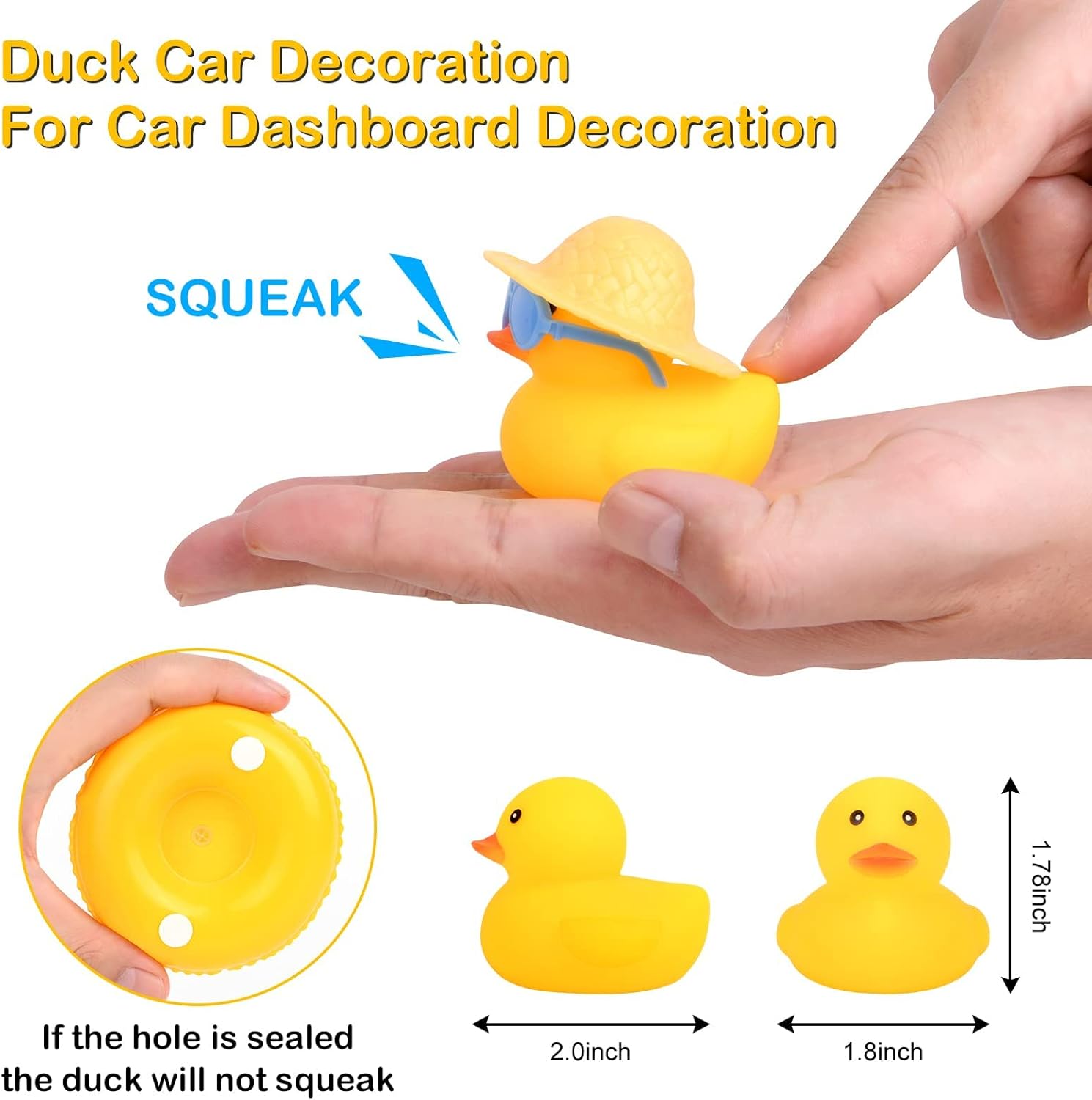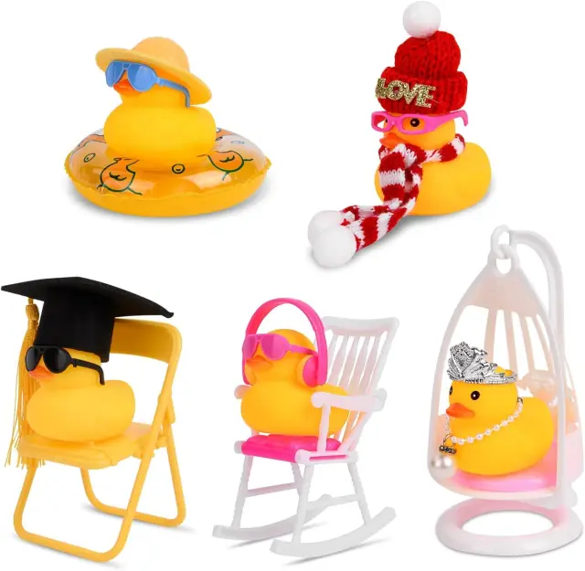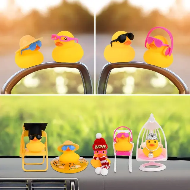 Set gumijastih račk AUAUY predstavlja domiselno izbiro za vse, ki želijo v notranjost svojega vozila vnesti kanček humorja in osebnega sloga. Vsaka račka v kompletu je skrbno oblikovana z različnimi dodatki, kot so sončni klobuki, očala, verižice in mini sedeži, kar omogoča ustvarjanje unikatnih dekorativnih kombinacij. Izdelane so iz kakovostne gume, ki zagotavlja mehkobo in trpežnost, zato so primerne tako za okrasitev armaturne plošče kot za uporabo v obliki antistresne igrače. Zaradi priloženega dvostranskega lepilnega traku je namestitev hitra in varna, njihova interaktivna funkcija piskanja pa poskrbi za dodatno zabavo med vožnjo ali igro.
