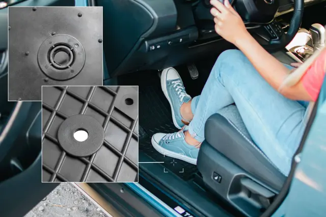 Pritrdilni elementi:okrogel tip CP2, nameščen na voznikovi preprogi