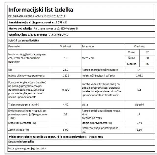 Vrnjen artikel - GORENJE GV693A65UVAD pomivalni stroj