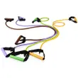 Vadbena cevka z mehkim a ročaj ema je primerna za vadbo doma in v fitnes centrih. Na voljo 5 različnih odpor ov : ekstra lahka (rdeča), lahka (zelena), srednja (modra), močna (črna) in izjemno močna (srebrna).