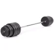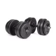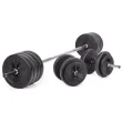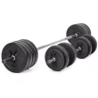60-kilogramski Gymstick Vinyl Barbell & Dumbbel Set je vsestranski komplet uteži za domačo telovadnico. Uteži se enostavno lahko prestavljajo med palico in dumbbelom. Pritrdijo se z vzmetnimi ključavnicami.