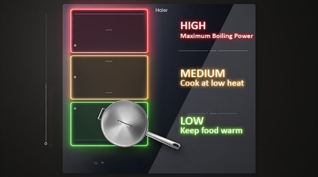 Ni se vam treba ukvarjati z zapletenimi nastavitvami, ko želite doseči višjo ali nižjo temperaturo, samo premaknite posodo navzgor ali navzdol in raven moči se samodejno spremeni. Del z visoko močjo uporabite za vretje, srednji del za splošno kuhanje, del z nizko močjo pa za ohranjanje toplote v ponvi ter za pripravo nežnih omak in sladic.