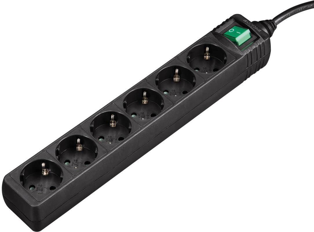 Hama 121916 razdelilna letev s stikalom 6-kratni črna vtičnica 1 kos