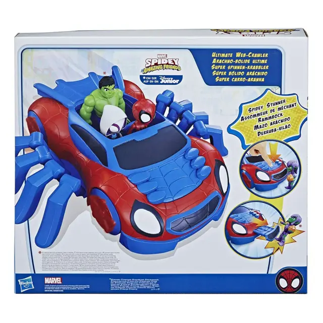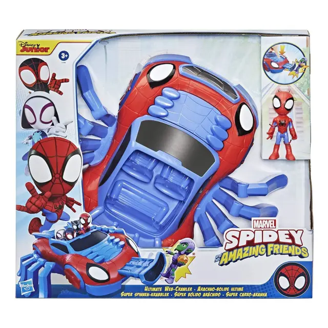 Web-Crawler je popolnoma gibljiv, zato ga lahko otrok postavi v vse možne položaje in poustvari akcijske prizore iz serije.. Pajkove noge so gibljive in se lahko raztegnejo za večjo stabilnost.. Komplet vključuje figurico Spieyja, ki je pripravljen, da se usede za volan svojega vozila.. Figurica je gibljiva in lahko zavzame več položajev..