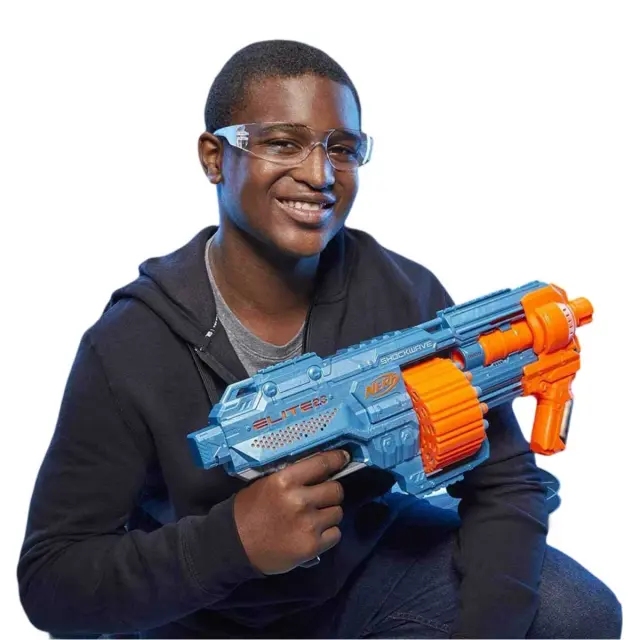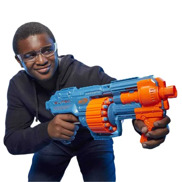Ta puška Blaster Elite 2.0 Shockwave RD-15 vam omogoča večkratno streljanje na nasprotnike, saj ima vrtljivo cev, v katero lahko spravite do 15 puščic.. Enostavno potegnite zaporko in nato sprožilec, da izstrelite en strel naenkrat ali v serijah, odvisno od situacije.. Blaster z dometom 27 metrov je mogoče prilagoditi s tremi taktičnimi vodili, točko za pritrditev na cev in točko za pritrditev na ročaj.. Priloženih je 30 puščic, zato lahko cev napolnite dvakrat, ne da bi vam zmanjkalo puščic..