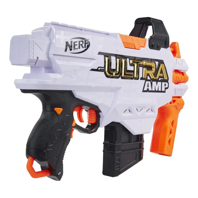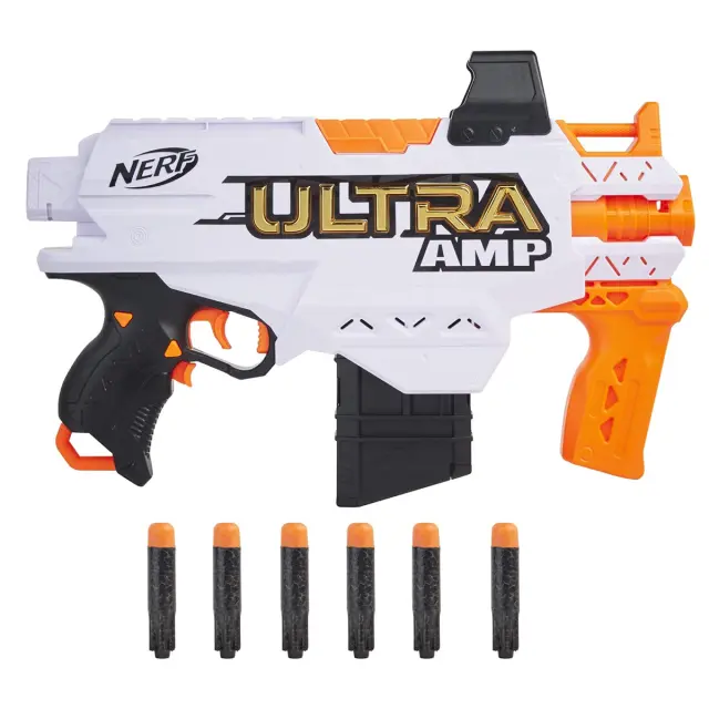 Ta brizgalka Nerf Ultra je ena izmed vrhunskih brizgalk, ki združuje zmogljivost in obliko.. Priložen ji je nabojnik za 6 puščic Nerf Ultra, ki jih odlikuje tehnologija Aerofin.. Ta blaster je motoriziran, kar mu omogoča hiter strel in popolno prilagajanje strelov zaradi vgrajenega namerilnika.. Uporaba je preprosta: s pritiskom na gumb za pospeševanje aktivirajte motor, nato pa pritisnite na sprožilec in sprožite..
