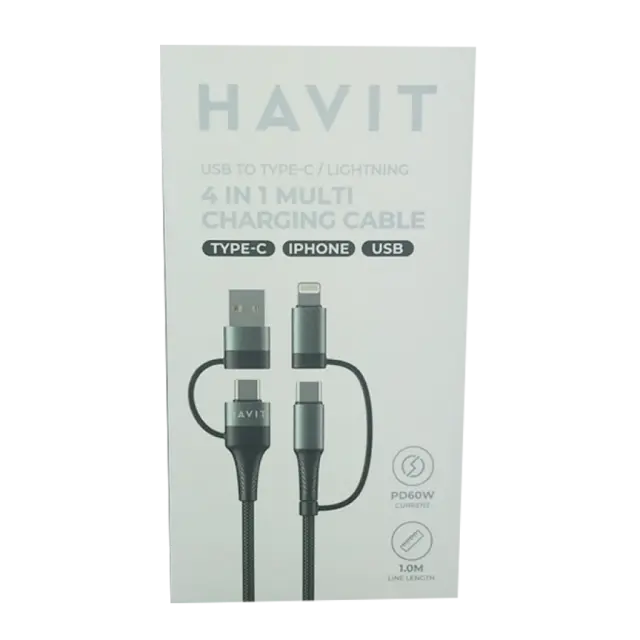 HAVIT Kabel 4v1 za polnjenje mobilnih telefonov (Type C, iPhone, USB) 60W