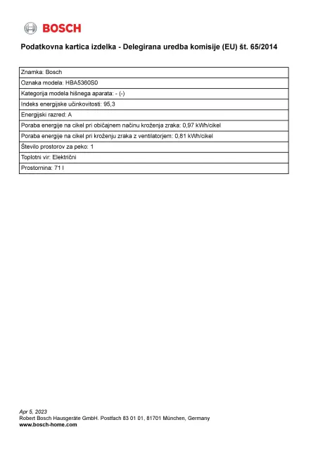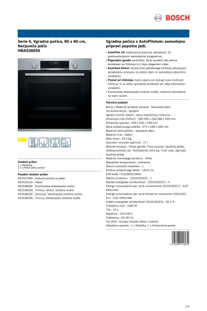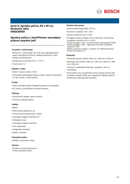 BOSCH HBA5360S0 vgradna pečica