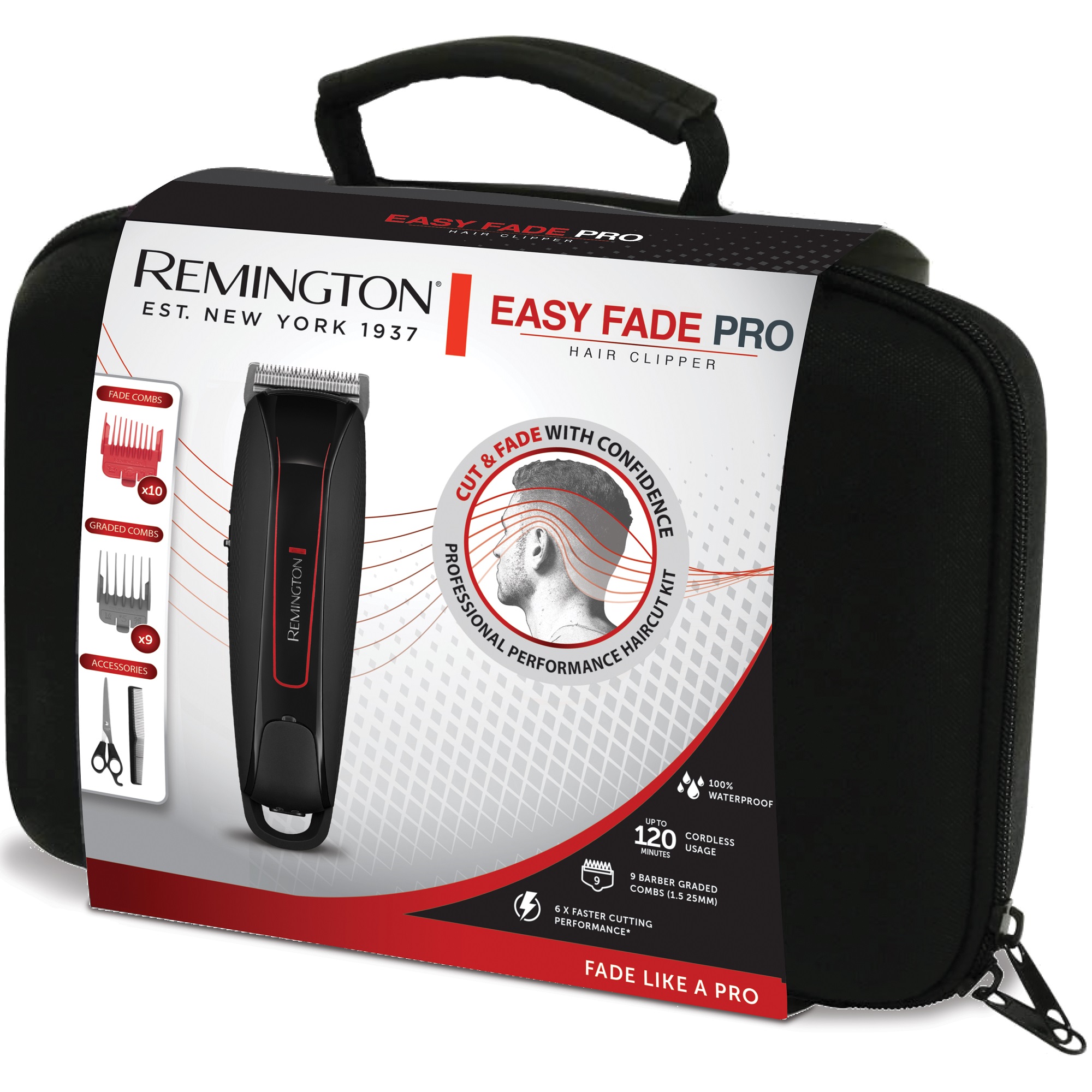 Remington Easy Fade Pro strižnik za lase je hiter strižnik s 6-krat hitrejšim striženjem*, ki je kot nalašč za ustvarjanje "fading" prehodov in koničasto striženje. Z 10-imi posebej oblikovanimi koničastimi glavniki lahko brezskrbno ustvarjate prehode med različnimi stopnjami las, zato vam za doseganje želenega učinka ni treba uporabljati različnih orodij. Izbira 9-ih fiksnih glavnikov je idealna za striženje različnih dolžin las. Tudi če ste začetnik pri "fading" prehodih ali koničastem striženju, boste s tem strižnikom svoj slog izboljšali lažje, kot si mislite.