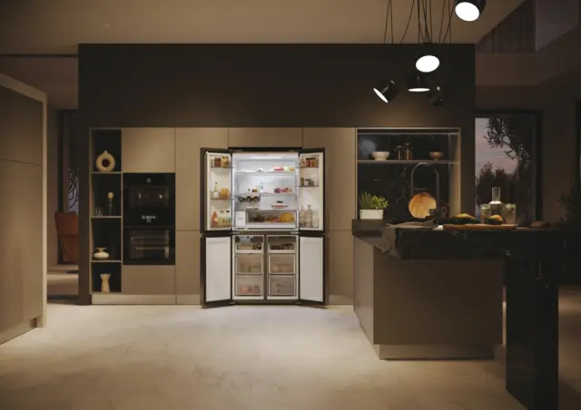 Haier preko aplikacije hOn ponuja funkcijo Proaktivna temperatura. Aplikacija na osnovi vaše geolokacije in vaših nakupovalnih navad predvidi optimalno hladilno temperaturo. Ko se vrnete domov z nakupovanja, je temperatura nastavljena in se, ko zložite živila v hladilnik, samodejno vrne na optimalno temperaturo kar 73 % hitreje*. * Rezultati testa, ki jih je izdal neodvisni zunanji laboratorij za model Haier C3FE844CGJ s funkcijo Proaktivne temperature VKLOP/IZKLOP.