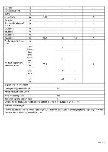 · Uporabna prostornina hladilnega predela: 319 l