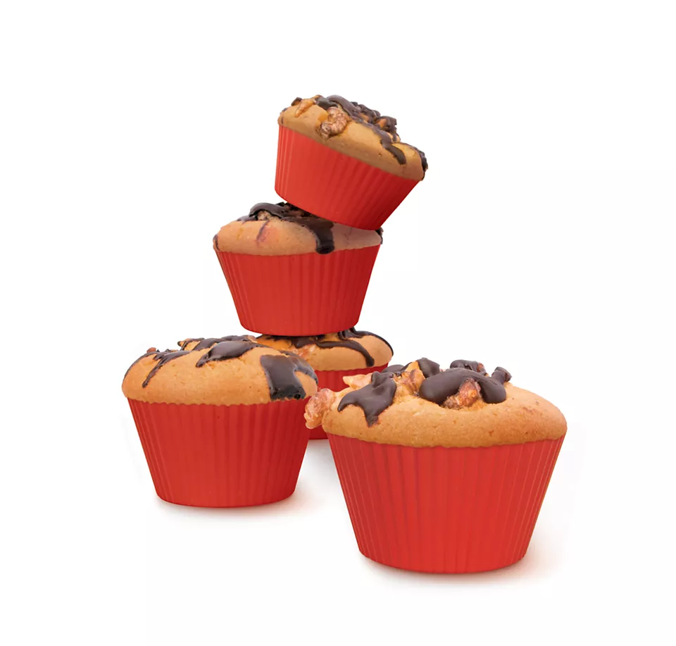 Mafine ali kolačke lahko enostavno odstranite iz modelčkov za mafine za Airfryer zaradi upogljivega materiala. Nabrani robovi dajejo še lepši videz mafinov. Izdelani so iz silikona brez vonja in modelčke za mafine za Airfryer lahko vedno znova in znova uporabljate.