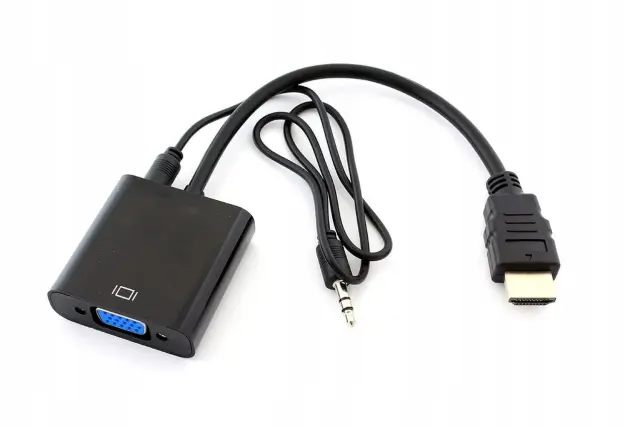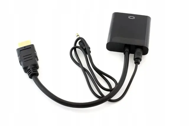 Pretvornik slike visoke ločljivosti iz HDMI signala v VGA signal (D-Sub) + dodatni AUDIO kabel! Naprava pretvori digitalni signal HDMI v analogni signal VGA (nikoli obratno). Poleg tega pretvori digitalni zvok HDMI v analogni stereo zvok!