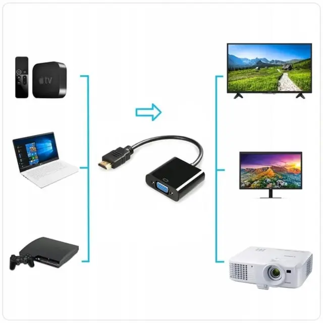 - Adapter je idealen za priklop projektorjev, monitorjev in televizorjev na naprave z izhodom HDMI.
