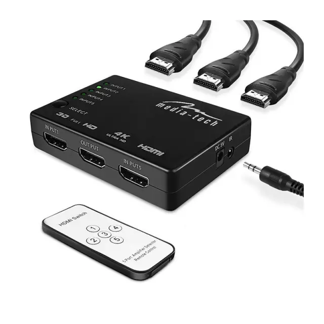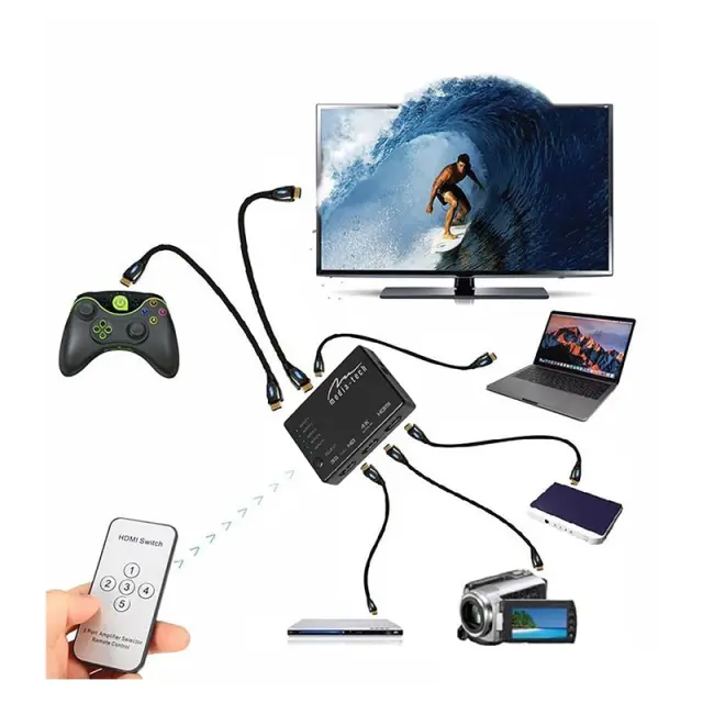 Preklopno HDMI stikalo se uporablja za preklapljanje slike iz največ 5 različnih virov, povezanih z napravo. Stikalo bo uporabno, če želite povezati več naprav (npr. Konzolo, prenosni računalnik, dekoder, dvd itd.) na televizor ali monitor, ki nima dovolj vrat HDMI.