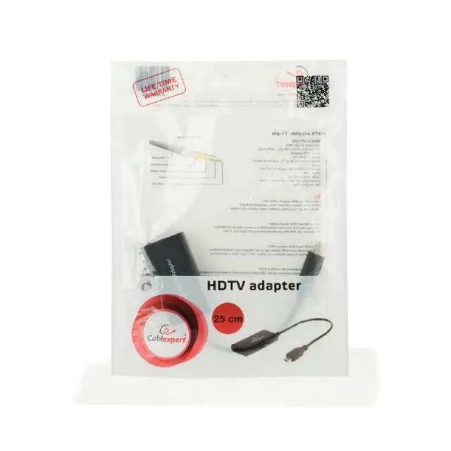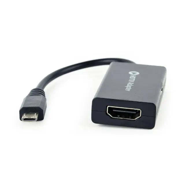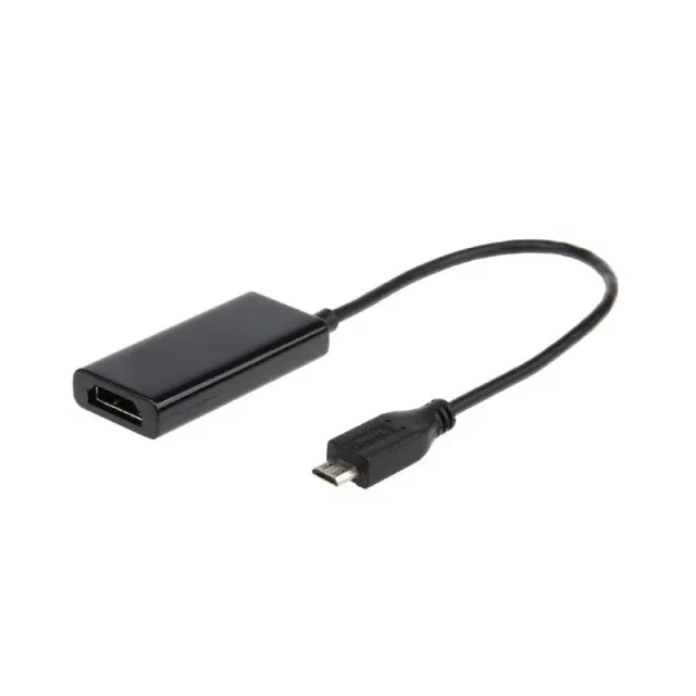 Adapter Micro-USB na HDMI (MHL). Vrata USB v telefonu spremeni v običajna vrata HDMI. Deluje z vsemi 11-pin MHL mobilnimi telefoni in tabličnimi računalniki. Uporabite daljinski upravljalnik televizorja za nadzor in dostop do vsebine v telefonu. Podpira vsebino s širokopasovno zaščito digitalne vsebine (HDCP). Telefon se polni ko je priklopljen.