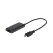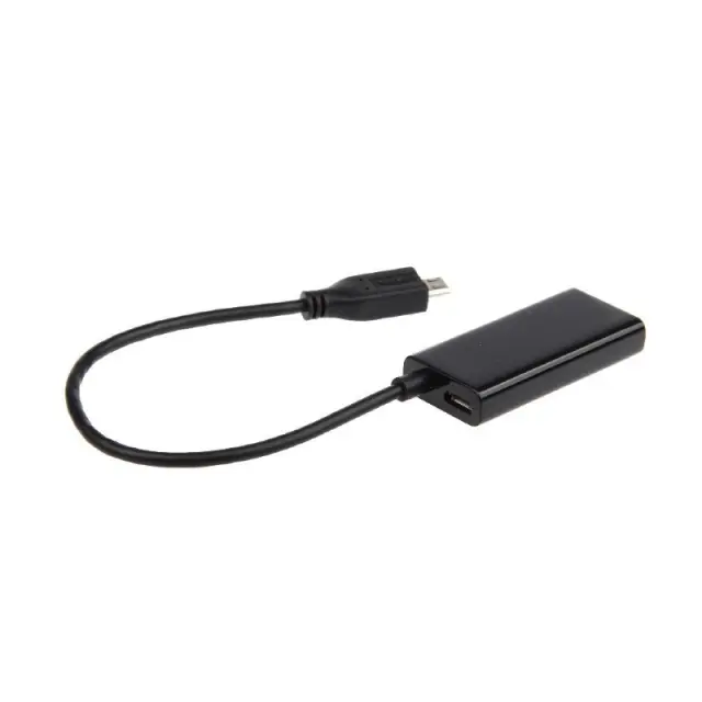 Adapter Micro-USB na HDMI (MHL). Vrata USB v telefonu spremeni v običajna vrata HDMI. Deluje z vsemi 5-pin MHL mobilnimi telefoni in tabličnimi računalniki. Uporabite daljinski upravljalnik televizorja za nadzor in dostop do vsebine v telefonu. Podpira vsebino s širokopasovno zaščito digitalne vsebine (HDCP). Telefon se polni ko je priklopljen.