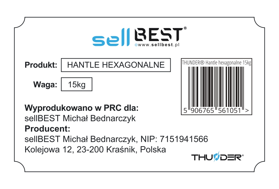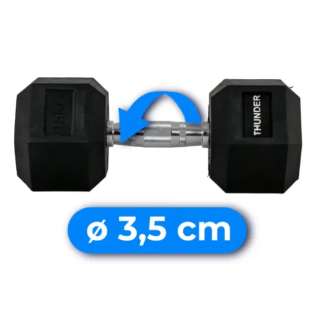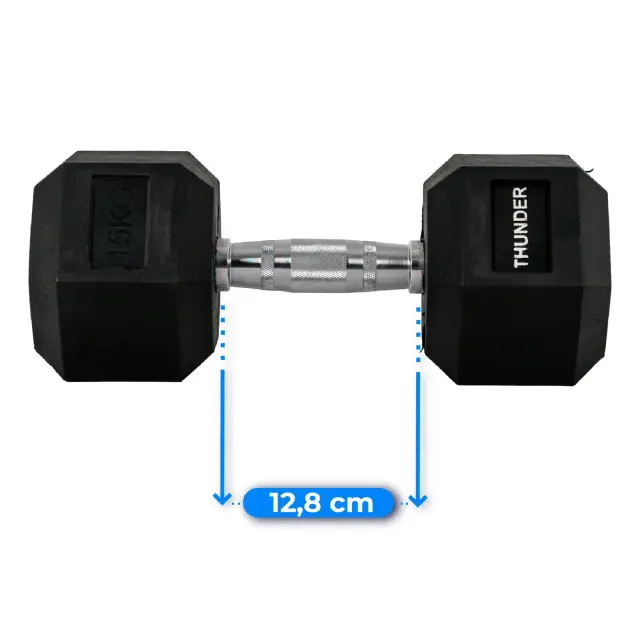 Heksagonalna utež THUNDER® 15 kg – gumirana, proti zdrsu, za domači in profesionalni trening