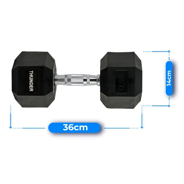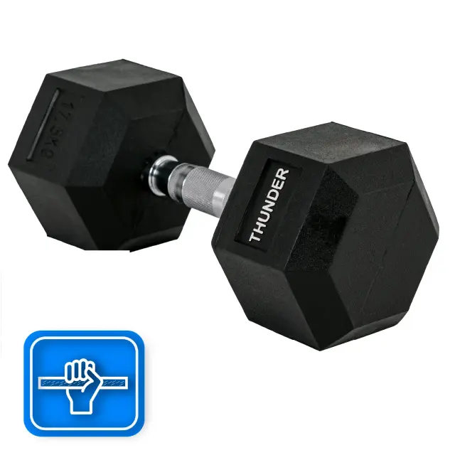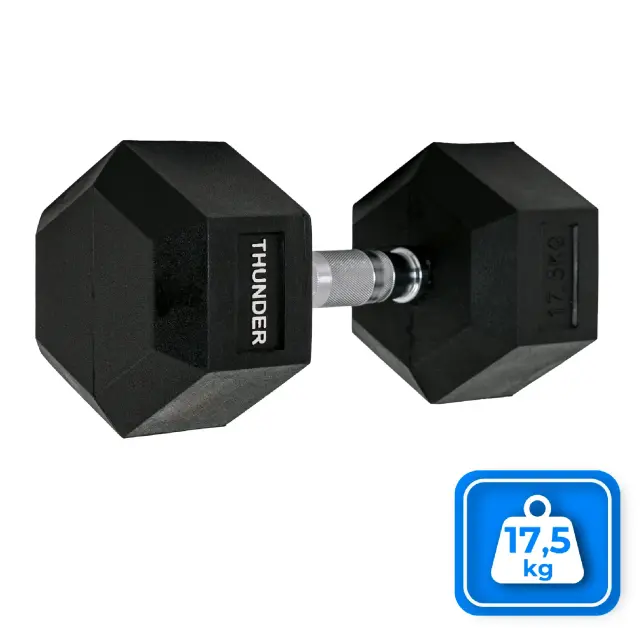 Heksagonalna utež THUNDER® 17,5 kg – gumirana, proti zdrsu, za domači in profesionalni trening
