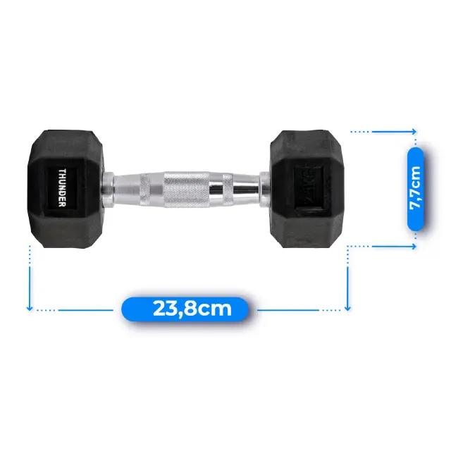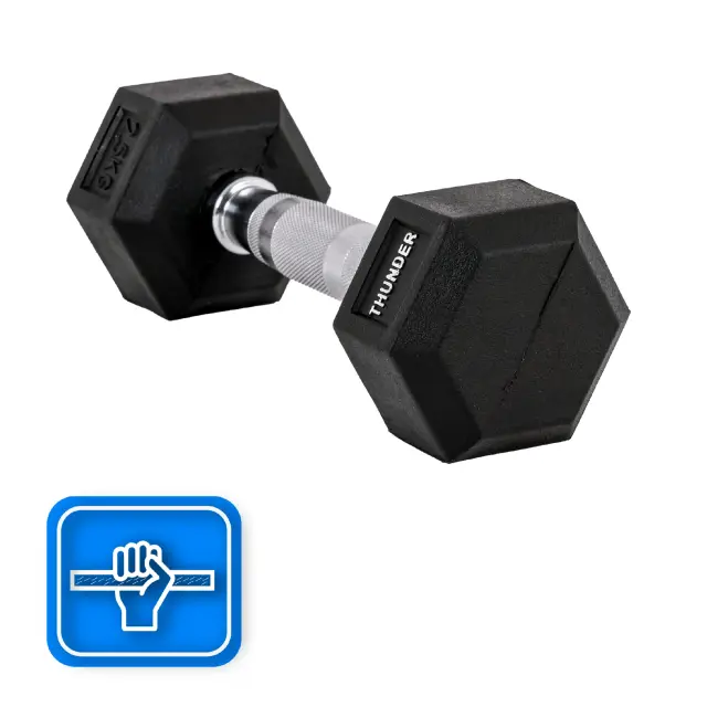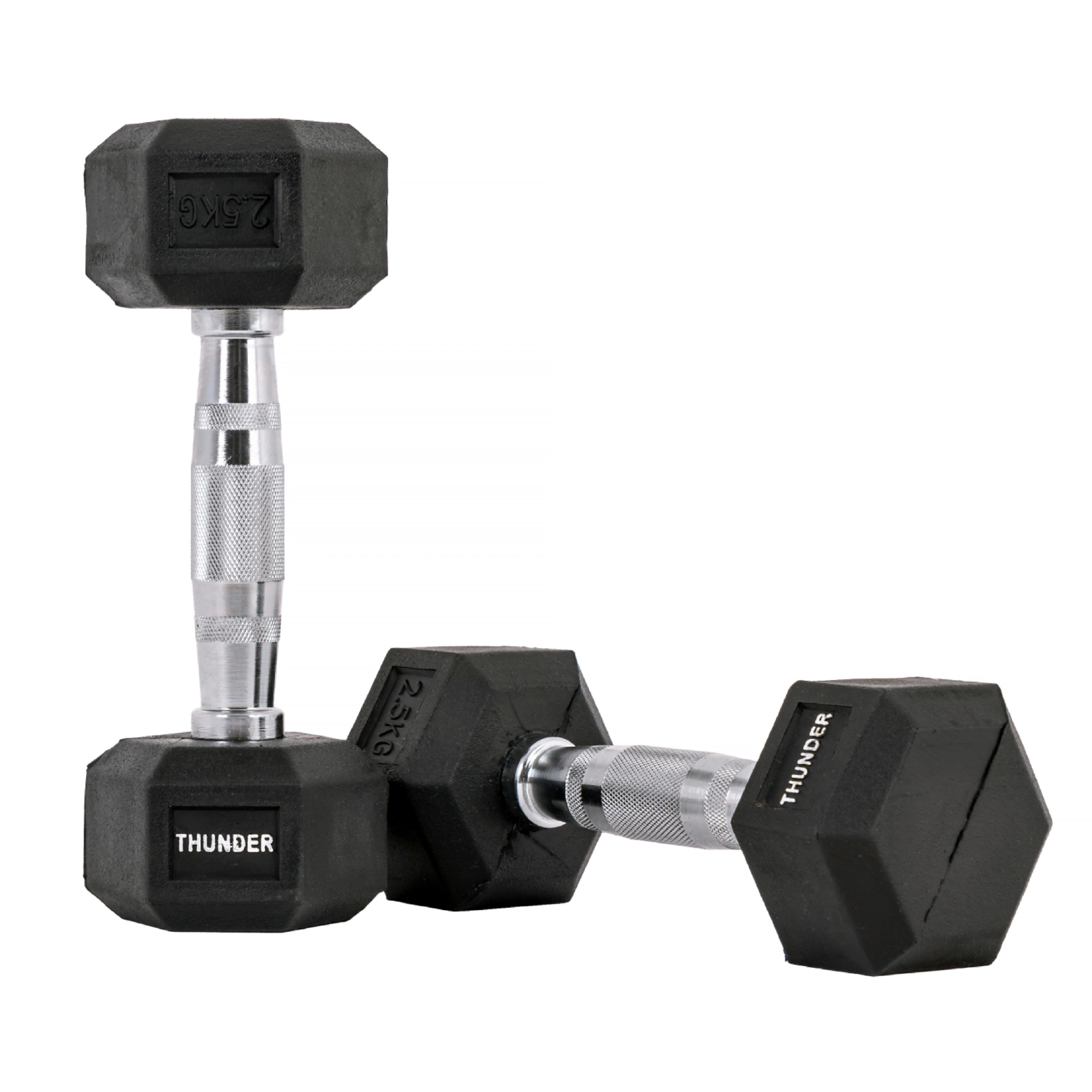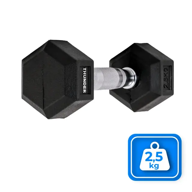 Heksagonalna utež THUNDER® 2,5 kg – gumirana, proti zdrsu, za domači in profesionalni trening