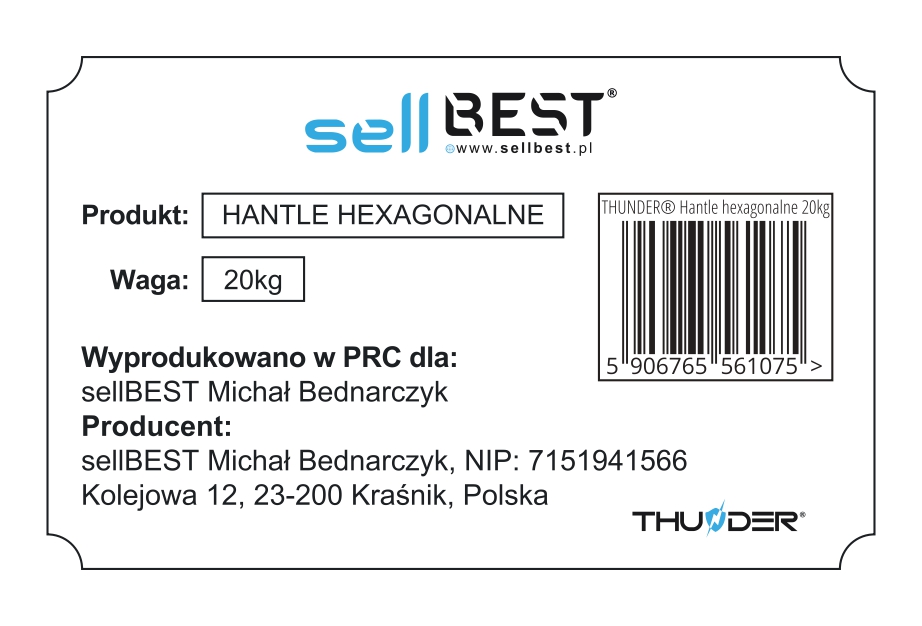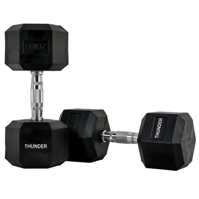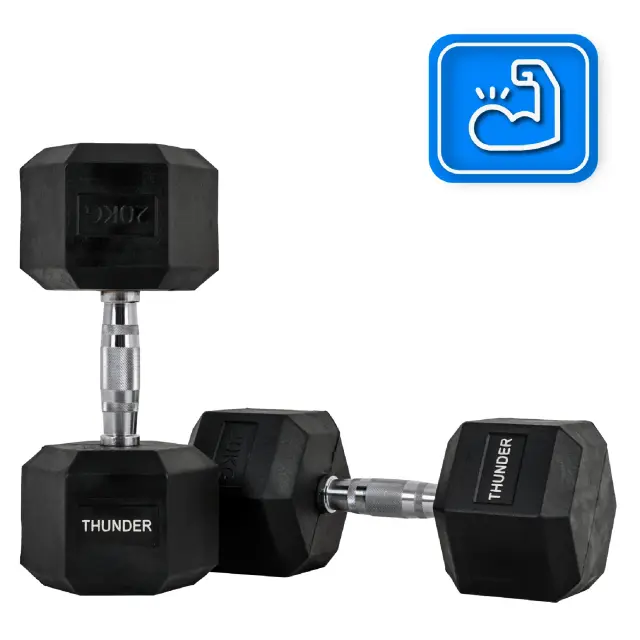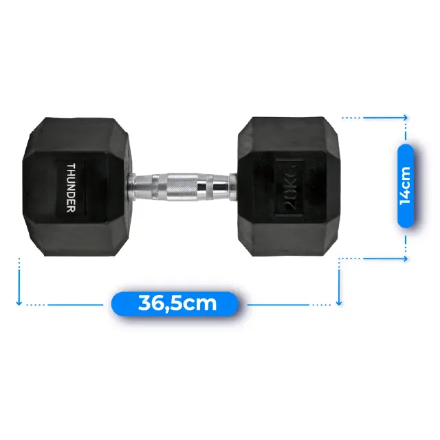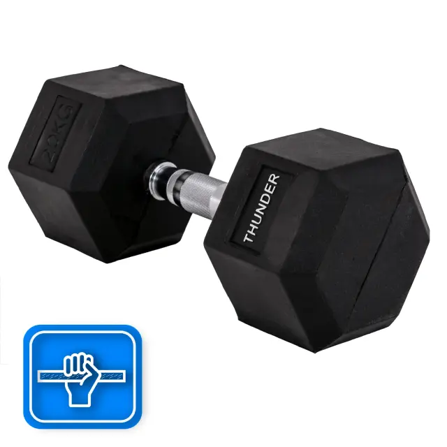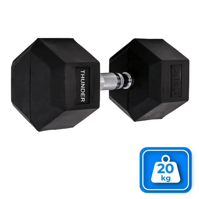 Heksagonalna utež THUNDER® 20 kg – gumirana, proti zdrsu, za domači in profesionalni trening