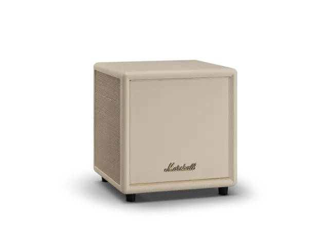 Prepoznaven Marshall dizajn v elegantni cream barvi z značilno teksturo in kovinskimi detajli poskrbi, da se subwoofer estetsko zlije s prostorom in drugimi Marshall napravami. Kljub svoji moči deluje prefinjeno, brez popačenj in z izjemno kontrolo nizkih frekvenc.