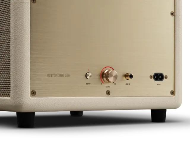 /Marshall Heston 200 TV Sub Cream je ustvarjen za tiste, ki želijo svoji TV in glasbeni izkušnji dodati pravo globino in polnost zvoka.marshall_heston-sub-200_lifestyle-product_with-heston-120_1