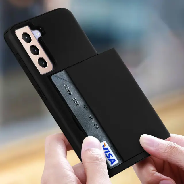 Etui za Samsung Galaxy S21 iz dveh materialov, serija Defender, šciti vaš mobilnik in ga oblece v eleganco. Ovitek za Samsung Galaxy S21 vkljucuje prostor za shranjevanje vaše kartice. Ovitek za Samsung Galaxy S21 s 3 mm dvignjenimi robovi.