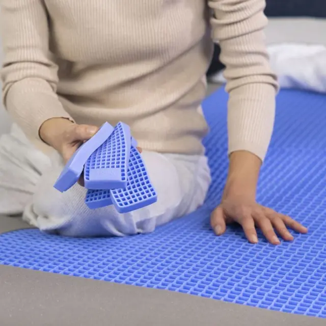 - Do 25 % boljša podpora in vrhunsko udobje s tehnologijo MemoGel.: Naša inovacija MemoGel je poseben material, ki je do 50 % bolj zračen kot običajna spominska pena, saj njegova mrežasta struktura izboljšuje pretok zraka. MemoGel nudi tudi do 25 % boljšo podporo telesu, razbremeni točke pritiska in se nemudoma odzove na vsak premik telesa. Hkrati je tudi izjemno vzdržljiv in prožen ter se v trenutku povrne v prvotno stanje, ko se premakneš.