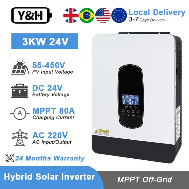 Hibridni solarni inverter, 10200W največji PV vhod, 98% učinkovitost, SP-3KW-24V BAT, AC 220-240V