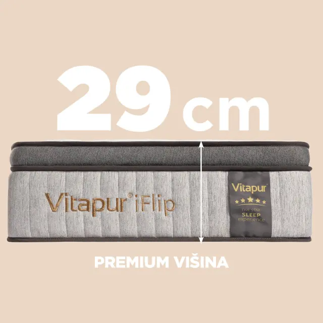 Hibridno ležišče Vitapur iFlip ti zagotavlja udobje, ki ga potrebuješ, natanko tako, kot ti je všeč. Izbiraš lahko med dvema različnima trdotama ležišča, saj lahko penasti nadvložek enostavno obračaš po svoji želji. Na voljo imaš mehkejšo in ekstra udobno stran ali tršo stran za boljšo podporo telesu – kot nalašč za individualne potrebe. Poseben dvostranski sezonski nadvložek je izdelan za vse letne čase: ena stran v toplejših mesecih poskrbi za sveže spalno okolje, druga pa ti v hladnejših dneh nudi prijetno topel občutek. Kot dve ležišči v enem, zasnovani tako, da se prilagajata tebi in tvojemu življenjskemu slogu. Nič več ne sklepaj kompromisov glede udobja – preprosto obrni, se sprosti in uživaj v prilagojenem spancu vse leto.