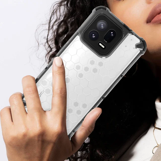 Hibridno ohišje Xiaomi 13 z ojacanimi vogali, odporno na udarce, v obliki satja - sivo