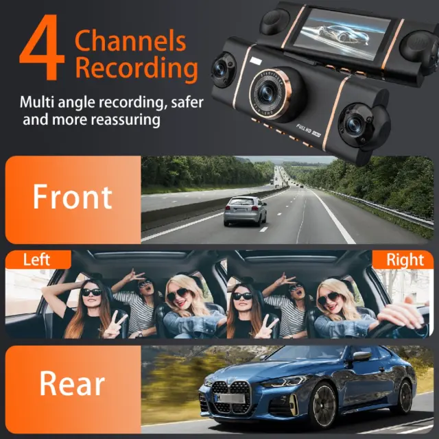 Comprehensive Coverage: Snemajte vsak kot s sistemom štirih leč, vključno s sprednjim, levim, desnim in zadnjim pogledom, kar zagotavlja celovito pokritost za snemanje nesreč in ugotavljanje odgovornosti. Širokokotne leče s 170 stopinjami zmanjšujejo mrtve kote in zagotavljajo zajem ključnih podrobnosti. Ta kamera je kot nalašč za profesionalne voznike, družine in vse, ki jim je varnost na cesti prioriteta.