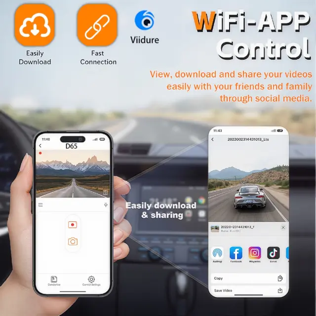 Seamless WiFi Connectivity: Povežite svoj pametni telefon prek WiFi za preprosto ogledovanje, prenos in skupno rabo posnetkov. Namenska aplikacija omogoča priročen dostop do posnetih videoposnetkov in prilagajanje nastavitev. Ta funkcija odpravlja potrebo po zapletenih prenosih podatkov prek računalnika. Povezljivost WiFi omogoča tudi spremljanje vašega vozila v realnem času, kar zagotavlja dodatno varnost in brezskrbnost. Aplikacija je združljiva z napravami iOS in Android, kar zagotavlja široko dostopnost.