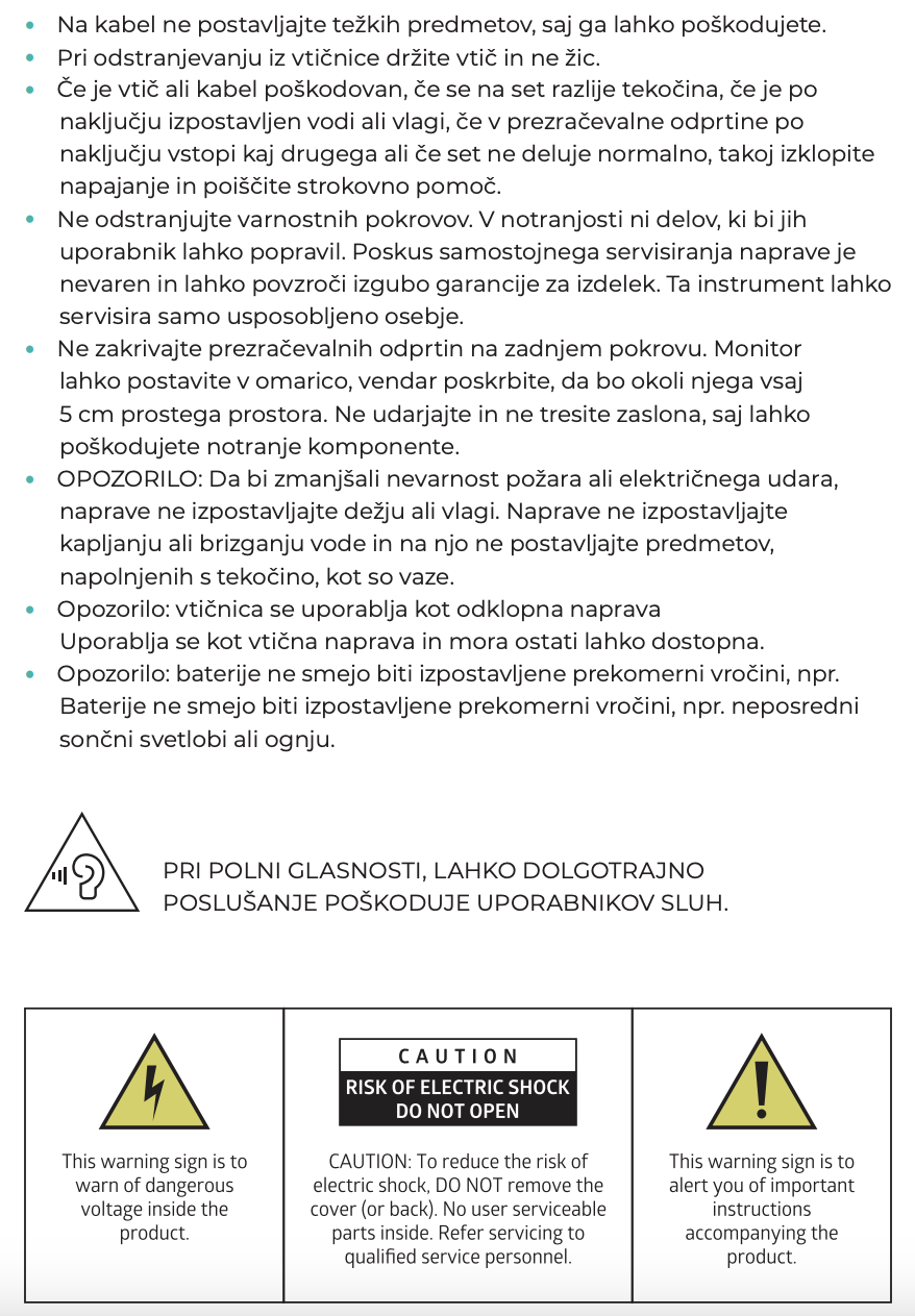 Slike o varnosti izdelka vsebujejo opozorila na embalaži izdelka in lahko vključujejo ključne varnostne informacije, povezane z določenim izdelkom.