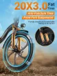 【DVOJNO BLAŽENJE UDARCEV IN TERENSKE PNEVMATIKE】 To mestno primestno e-kolo je opremljeno z dvojnim sistemom zračnega vzmetenja vilic in vzmetnega blaženja sedeža, ki lahko učinkovito zmanjša amplitudo nihanja in omogoča gladko vožnjo tudi po neravnih cestah. Z uporabo 20*3,0 palca širokih gorskih pnevmatik z močnejšim, proti obrabi odpornim in nedrsečim oprijemom lahko varno in gladko vozi tudi na spolzkih površinah, primerno za mestne in podeželske ceste.