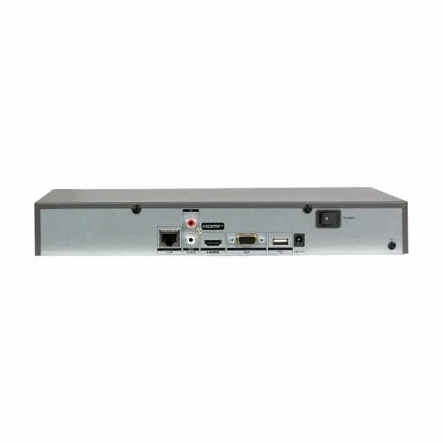 Digitalni video snemalnik HiLook NVR IP NVR-104MH-K za video nadzorni sistem se ponaša s 4 kanali, uporablja umetno inteligenco (AI) za bolj napredno varovanje. Podpira IP kamere do 12 MP ločljivosti, HDMI izhod pa ponuja ločljivosti predvajanja do 4K.