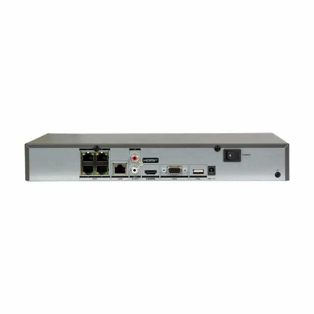 Digitalni video snemalnik HiLook NVR IP NVR-104MH-K/4P za video nadzorni sistem se ponaša s 4 kanali, funkcijo Plug&Play s 4 vmesniki za PoE napajanje. Podpira IP kamere do 12 MP ločljivosti, HDMI izhod pa ponuja ločljivosti predvajanja do 4K. Uporablja napredni AI sistem, ki samodejno optimizira varovanje in zmanjša ročno delo.