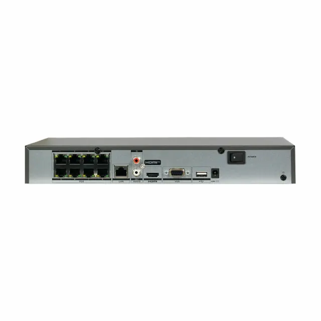 Digitalni video snemalnik HiLook NVR-108MH-K/8P za video nadzorni sistem se ponaša z 8 kanali, funkcijo Plug&Play za PoE napajanje in SATA vmesnik za priklop HDD-ja. Podpira IP kamere do 12 MP ločljivosti, HDMI izhod pa ponuja ločljivosti predvajanja do 4K. Uporablja napredni AI sistem, ki samodejno optimizira varovanje in zmanjša ročno delo.