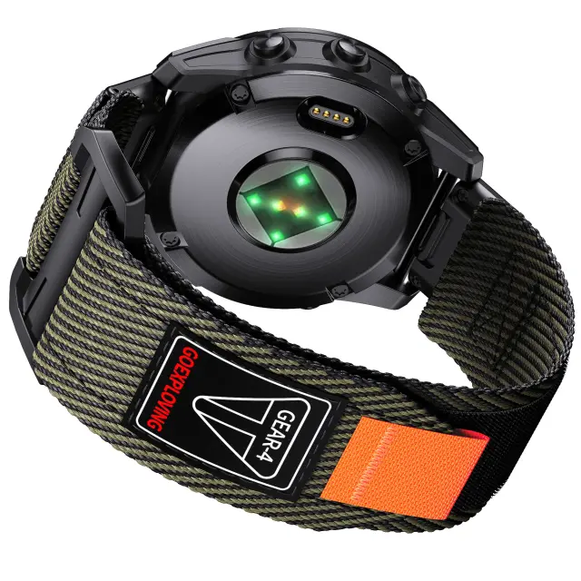 Eleganten & Vzdržljiv: Izdelan iz visokokakovostnega tkanega najlona, ta pas ponuja izjemno vzdržljivost in odpornost proti obrabi. Tesno tkana vlakna zagotavljajo robustno konstrukcijo, ki lahko prenese vsakodnevno uporabo in pustolovščine na prostem. Eleganten dizajn doda pridih prefinjenosti vaši uri Garmin, zaradi česar je primerna za priložnostne in formalne priložnosti. Material, ki ne bledi, zagotavlja, da pas ohrani svojo živahno barvo tudi po dolgotrajni izpostavljenosti sončni svetlobi in vodi. Uživajte v dolgotrajnem in modnem dodatku, ki dopolnjuje vaš aktiven življenjski slog.