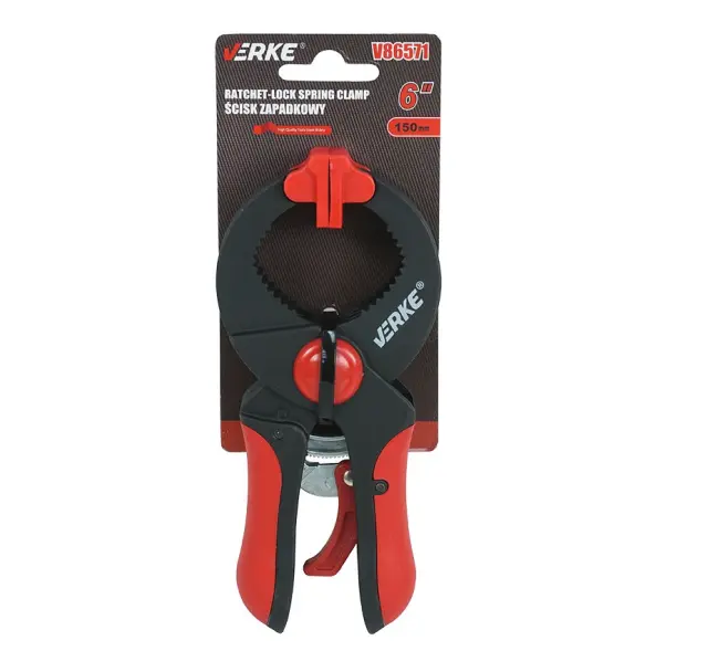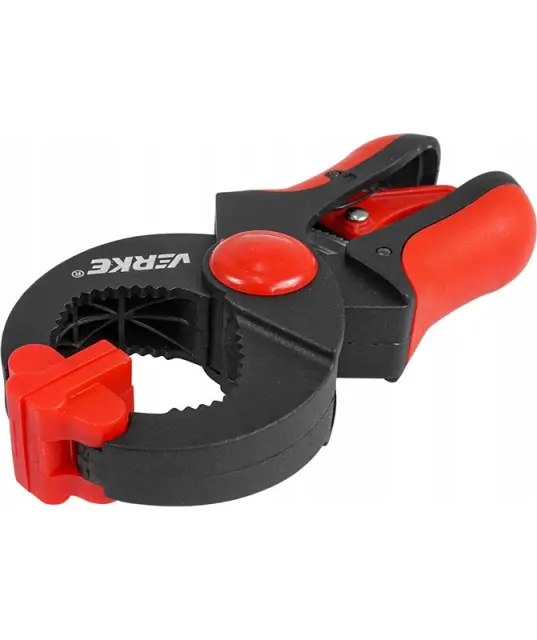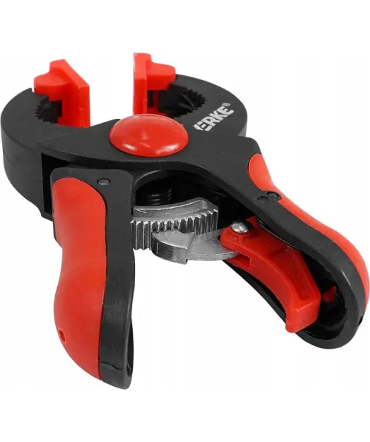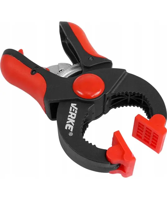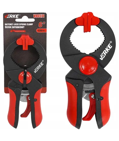 Vzmetna objemka z zaskočno ključavnico. Omogoča hitro, točkovno fiksiranje pri lepljenju in držanju različnih elementov, npr. pri mizarskih in modelarskih delih.