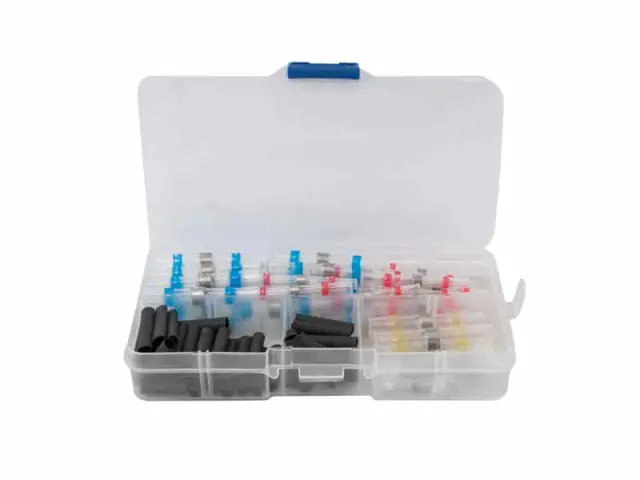 Priročen komplet, ki vsebuje 4 velikosti kositrnih hitrih spojk in 1 velikost toplotno skrčljive cevi. Hitre sprostitvene spojke, ki se lahko skrčijo, so nenadomestljiva rešitev, če želite zanesljivo povezati 2 žici ali popraviti poškodovano žico. Znotraj spojke za hitro sprostitev je pločevinasti obroč, ki se ob segrevanju topi in povezuje žice.