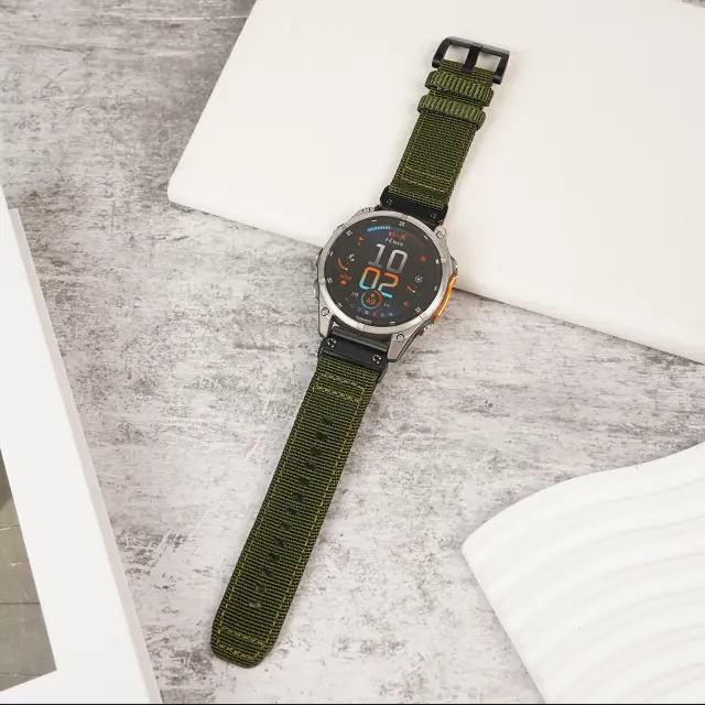 Udobno & Zračno: Izkusite neprimerljivo udobje z našim tkanim najlonskim platnenim paščkom. Zračna zasnova zagotavlja, da vaše zapestje ostane hladno in suho, tudi med intenzivnimi aktivnostmi. Mehka tekstura preprečuje draženje, zaradi česar je popoln za celodnevno nošenje. Uživajte v udobnem prileganju, ki se premika z vami, ne glede na to, ali ste v telovadnici, v pisarni ali raziskujete na prostem. Ta pašček je zasnovan za maksimalno udobje, kar vam omogoča, da se osredotočite na svoje aktivnosti brez motenj.